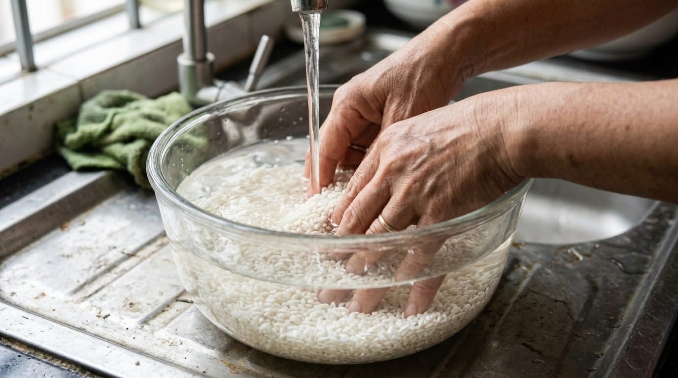 Sai lầm phổ biến nhất là chúng ta thường chỉ vo gạo qua loa. Lớp nước đục khi vo gạo chính là tinh bột tự do (free starch). Nếu lớp tinh bột này còn bám trên hạt gạo khi nấu, nó sẽ biến thành một lớp màng nhầy bao phủ hạt cơm, gây ra sự bết dính ngay lập tức.