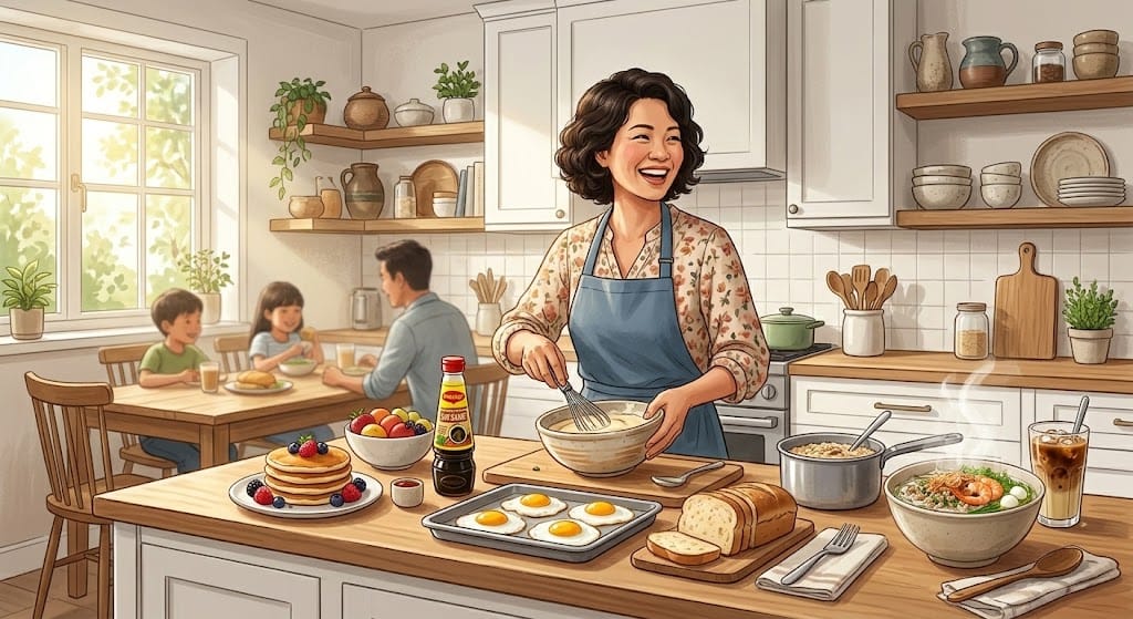Mình biết, rào cản lớn nhất khi nấu ăn sáng là... cơn buồn ngủ và sự thiếu hụt thời gian. Đây là cách mình "vận hành" bếp núc cực kỳ nhàn hạ: