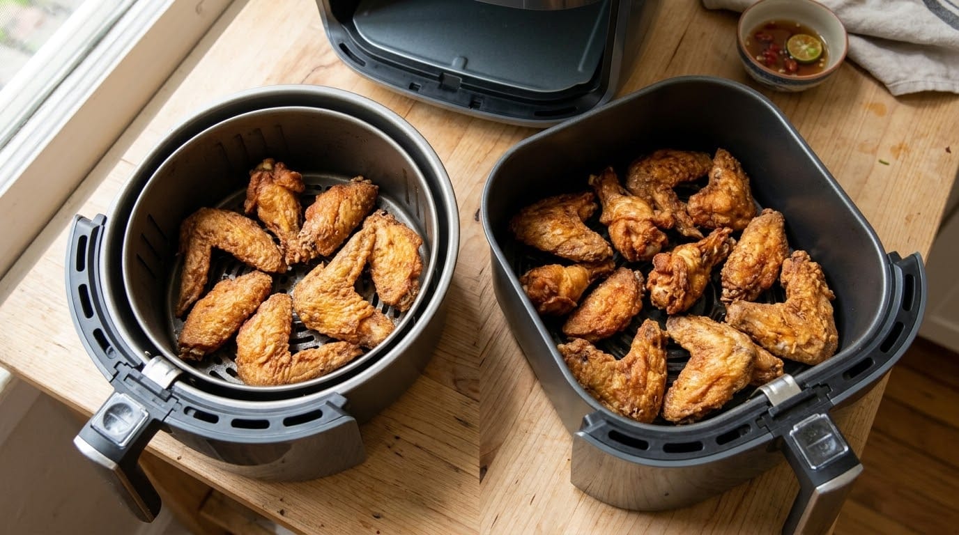 Theo trải nghiệm của mình, giỏ chiên hình vuông tối ưu diện tích hơn hẳn giỏ tròn. Bạn hãy tưởng tượng, cùng một thông số 5L, nhưng giỏ vuông giúp bạn xếp được nhiều cánh gà hơn theo các góc, hoặc đặt vừa vặn một miếng sườn dài mà không cần cắt nhỏ. Giỏ tròn thường tạo ra các "góc chết" khiến bạn không tận dụng được hết không gian. Nếu bạn thích làm bánh bằng nồi chiên, giỏ vuông cũng giúp việc đặt các khuôn bánh vào dễ dàng và cân đối hơn nhiều.