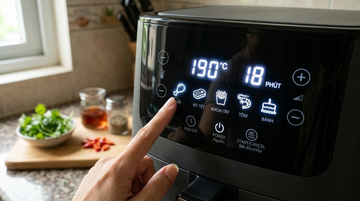 - Điểm nổi bật: Giải phóng sức lao động, không còn cảnh đứng bếp canh cánh dầu bắn tung tóe hay mùi dầu mỡ ám đầy tóc tai, quần áo.