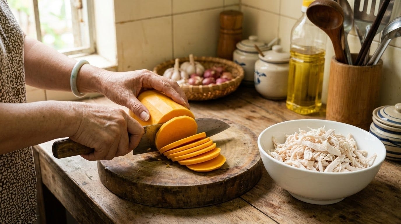 Một bát súp bí đỏ ức gà nóng hổi không chỉ đơn thuần là một món ăn, mà còn là sự vỗ về cho dạ dày sau một ngày làm việc mệt mỏi. Với màu vàng rực rỡ tượng trưng cho sự ấm áp và vị ngọt bùi đầy dinh dưỡng, món ăn này chắc chắn sẽ khiến các thành viên trong gia đình bạn, từ người già đến trẻ nhỏ, đều phải xuýt xoa khen ngợi.