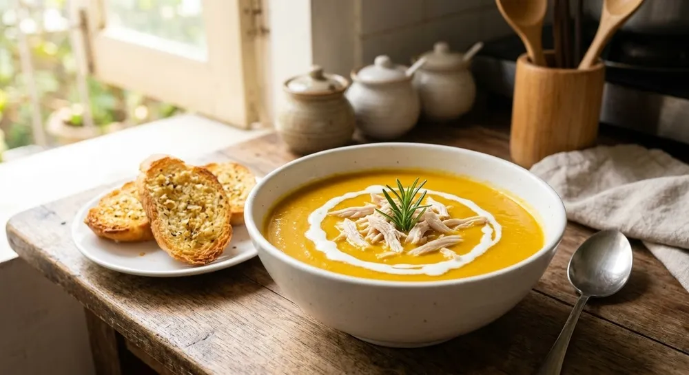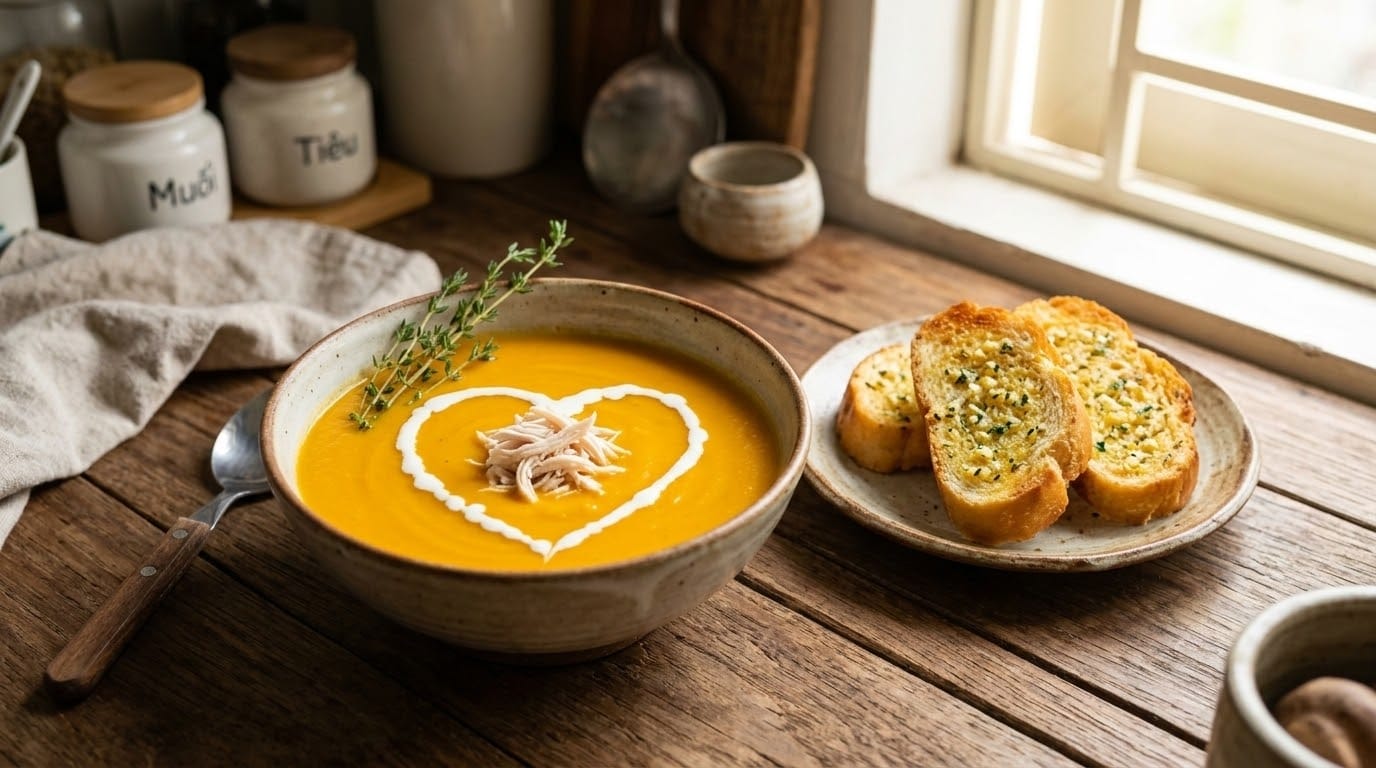 Recipe Card: Tóm tắt công thức súp bí đỏ ức gà