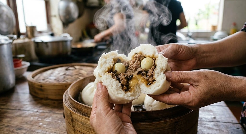Có bao giờ bạn đứng chờ bên xe bánh bao ven đường, chỉ để đợi khoảnh khắc người bán nhấc chiếc nắp xửng gỗ lên? Giây phút ấy, một luồng hơi nước trắng xóa, ấm sực phả thẳng vào mặt, mang theo mùi thơm dịu nhẹ đặc trưng của bột mì chín tới hòa quyện cùng hương vị đậm đà của thịt, tiêu và nấm hương. Cầm chiếc bánh nóng hổi trên tay, bóp nhẹ thấy độ đàn hồi như bông, xé đôi ra là làn khói nghi ngút cùng phần nhân mọng nước lộ ra... Cảm giác đó, thực sự là một sự vỗ về ngọt ngào cho bao tử vào những buổi sáng se lạnh hay buổi xế chiều đói bụng.