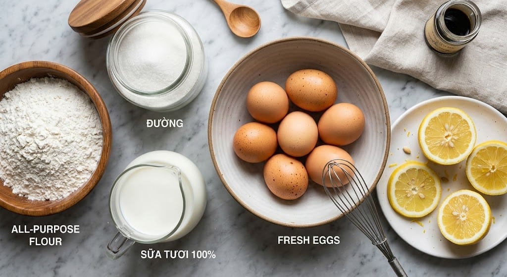 Chuẩn Bị Nguyên Liệu "Vàng" (Định lượng chuẩn cho khuôn 16-18cm)