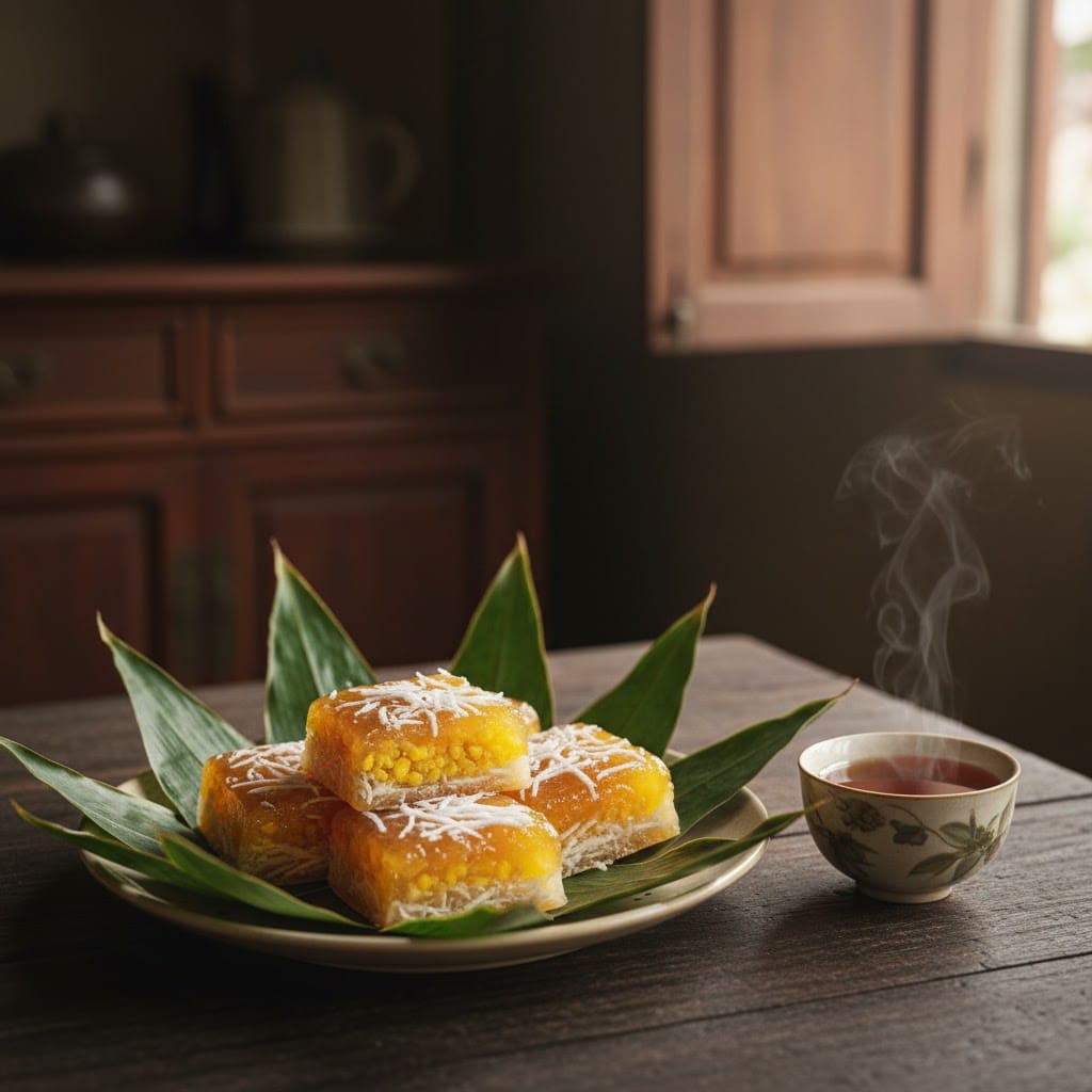 Cầm chiếc bánh trên tay, mình luôn cảm thấy có một sức hút kỳ lạ. Lớp vỏ bánh bóng bẩy, trong vắt như pha lê, lấp ló bên trong là những sợi dừa trắng muốt và phần nhân đậu xanh vàng óng ả. Khi cắn một miếng, cái cảm giác giòn dai sần sật của vỏ bánh hòa quyện cùng vị bùi béo, thơm nức của đậu xanh và nước cốt dừa tạo nên một trải nghiệm ẩm thực khó quên. Hôm nay, mình sẽ cùng bạn vào bếp để tìm hiểu cách làm món bánh này chuẩn vị truyền thống ngay tại nhà nhé!