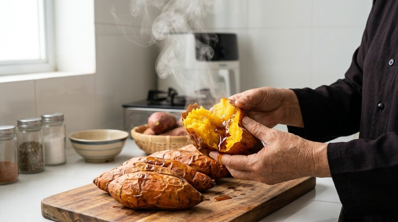 Dành cho những buổi sáng muốn thanh lọc cơ thể nhưng vẫn đủ năng lượng. Khoai lang mật nướng bằng nồi chiên không dầu mang đến hương vị ngọt lịm tự nhiên, vỏ ngoài hơi cháy xém thơm phức.