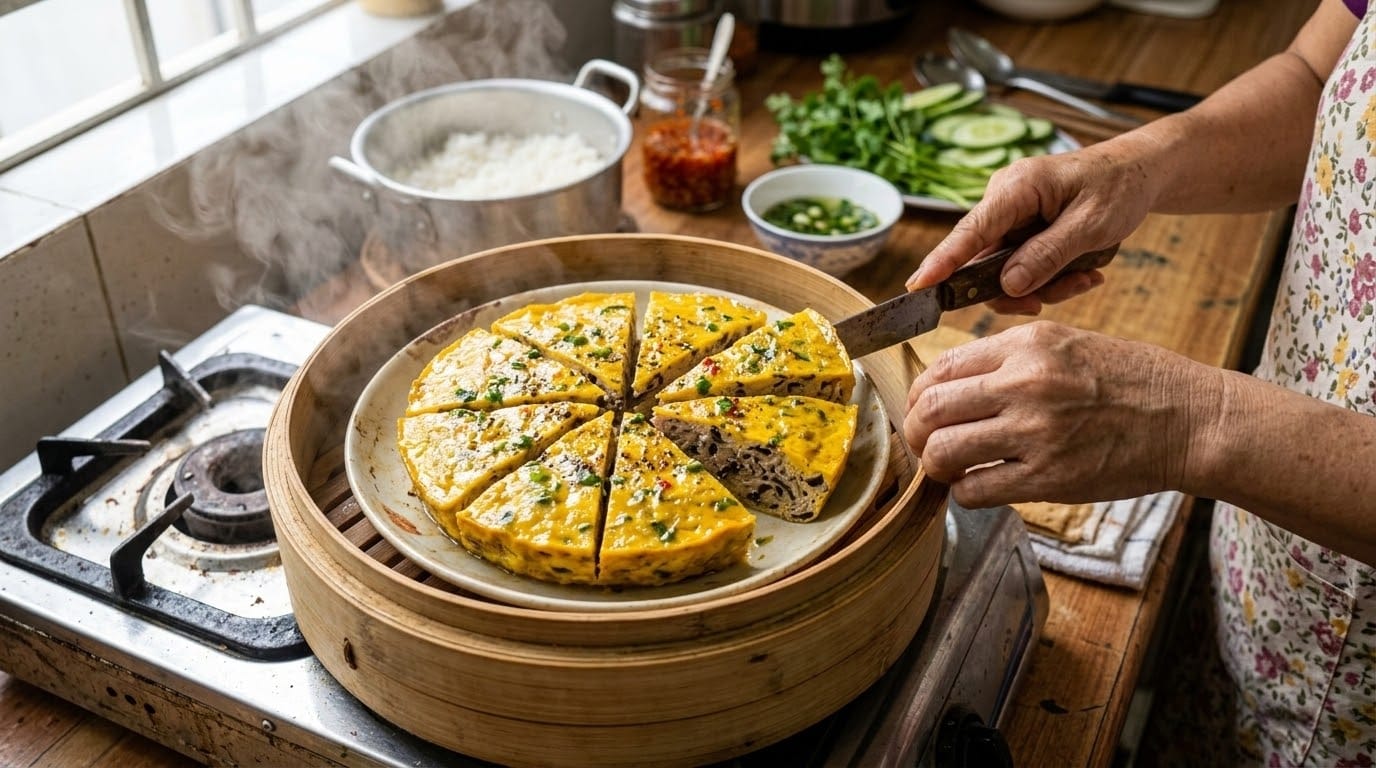 Làm sao để chả trứng không bị tách lớp giữa phần thịt và phần mặt vàng? Bí quyết là bạn phải để phần thịt chín hẳn rồi mới phết lòng đỏ lên. Đồng thời, khi phết lòng đỏ, hãy dùng cọ quét đều và nhẹ tay, sau đó hấp không đậy nắp để hơi nước không làm loãng lớp trứng này.
