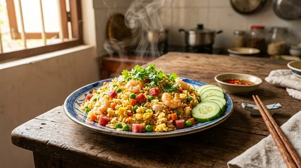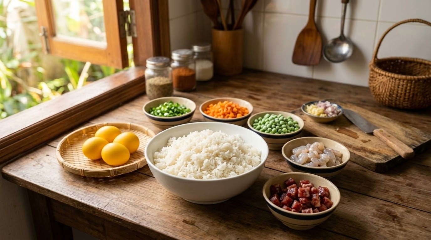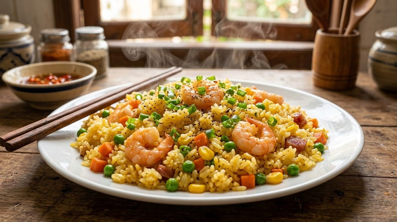 Tóm tắt nhanh: Bí quyết để món cơm chiên Dương Châu ngon nằm ở việc sử dụng cơm nguội để qua đêm và kỹ thuật trộn lòng đỏ trứng gà vào cơm trước khi chiên. Điều này giúp hạt cơm săn chắc, vàng đều và thơm ngậy mà không cần dùng đến phẩm màu.