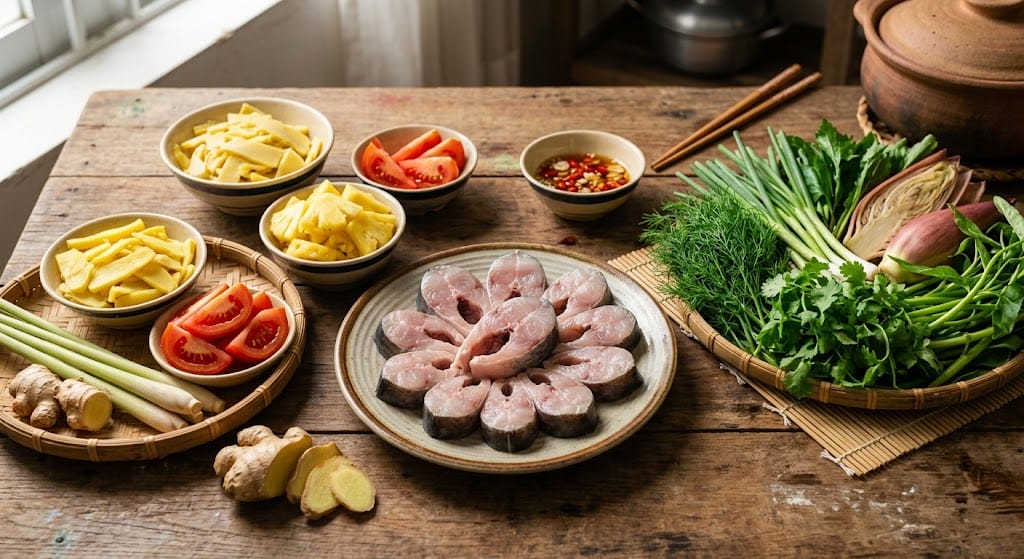 | Vị chủ đạo | Chua thanh từ măng rừng, cay nồng từ gừng/sả. | Ngọt đậm đà, chua từ dứa hoặc me. |