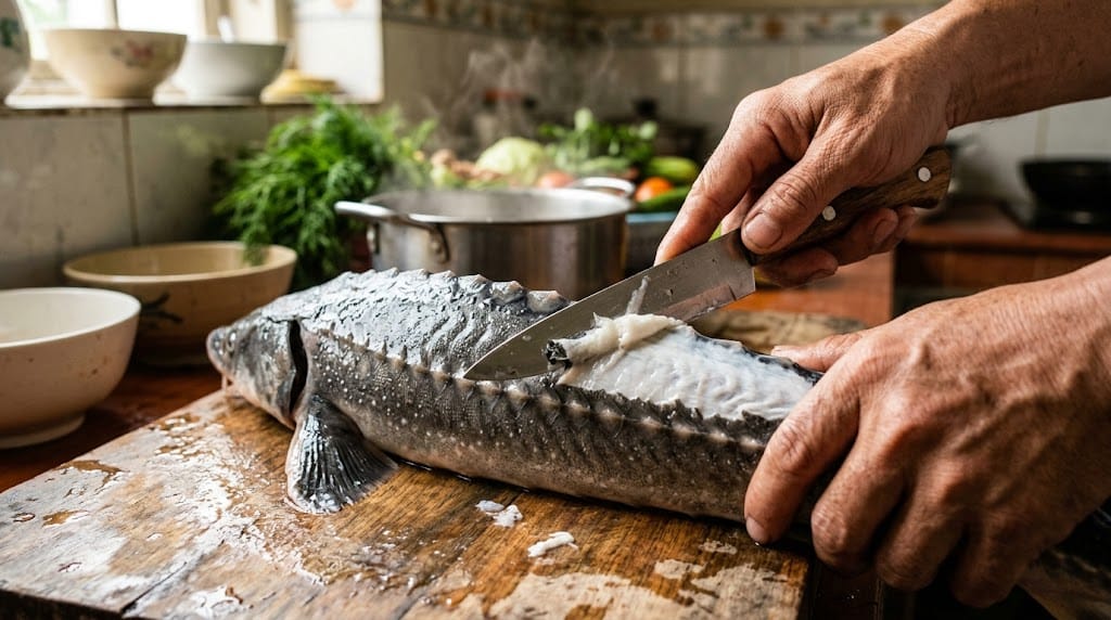 Bước 1: Sơ chế cá tầm - Bí quyết sạch nhớt, hết mùi tanh