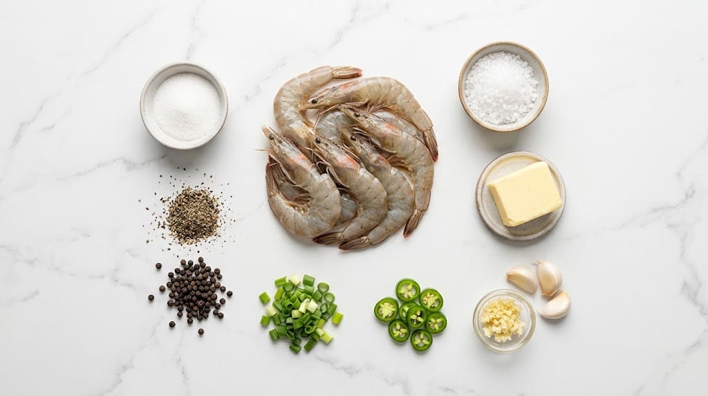 - 🦐 Nguyên liệu chính: Tôm sú hoặc tôm thẻ tươi, muối hạt thô, tỏi, ớt xanh, bơ lạt