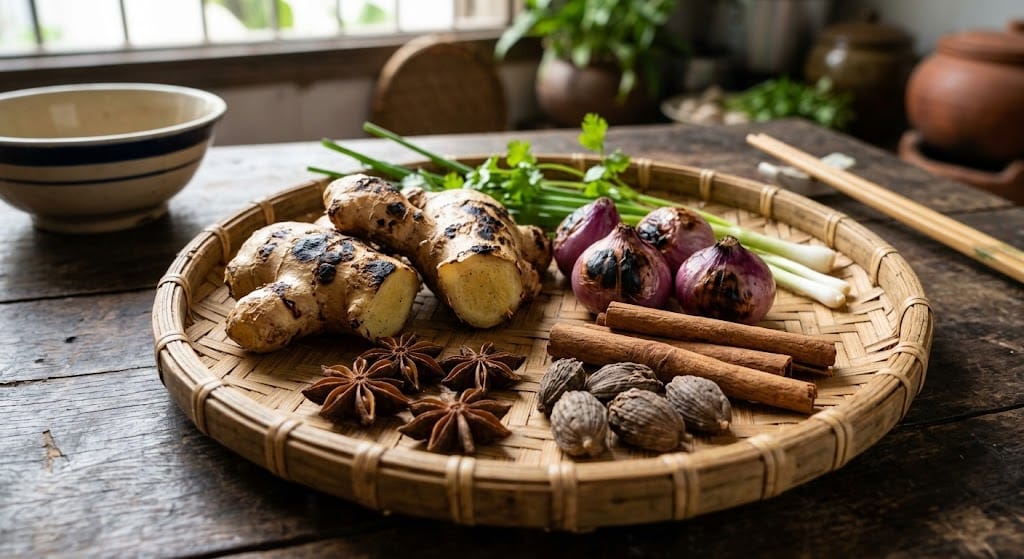 - Hạt mùi (ngò rí): 1 muỗng canh (đây là "chìa khóa" mùi hương của phở gà).