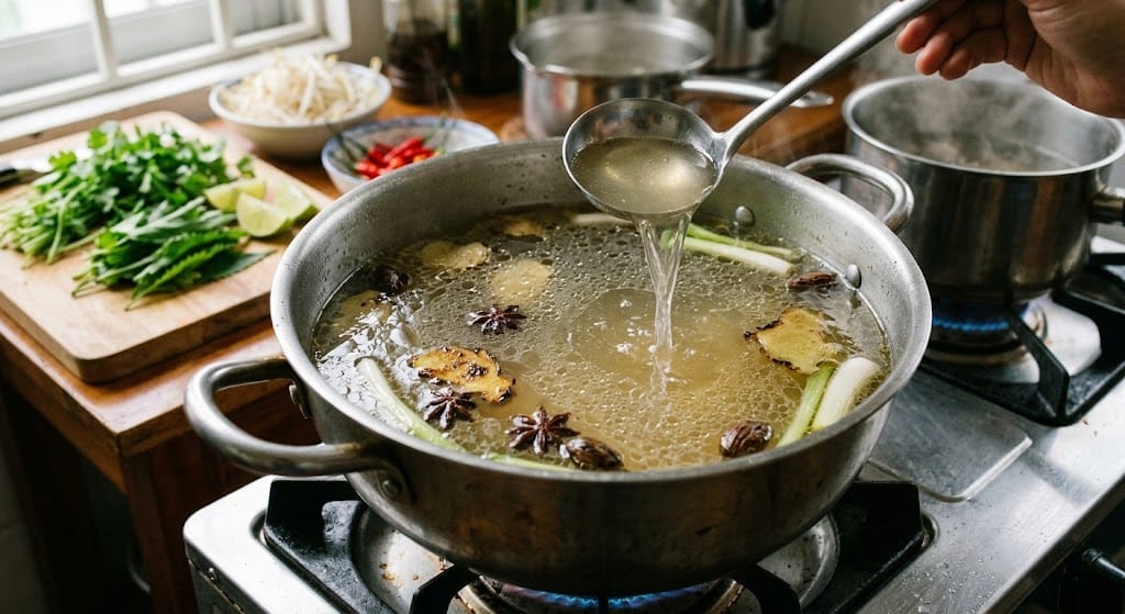 2.4. Ninh nước dùng (Nước cốt phở): Sự kiên nhẫn lên ngôi