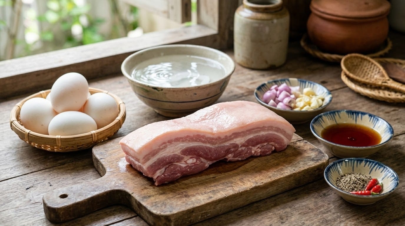 Để có món thịt kho tàu ngon đúng điệu, bạn cần chọn thịt ba chỉ tươi có đủ nạc và mỡ, ướp cùng nước mắm ngon và đường phèn. Bí quyết nằm ở việc sử dụng 100% nước dừa tươi để kho thay cho nước lọc và kỹ thuật hầm lửa nhỏ liu riu không đậy nắp để nước kho trong veo, lên màu hổ phách tự nhiên mà không cần dùng quá nhiều nước hàng.
