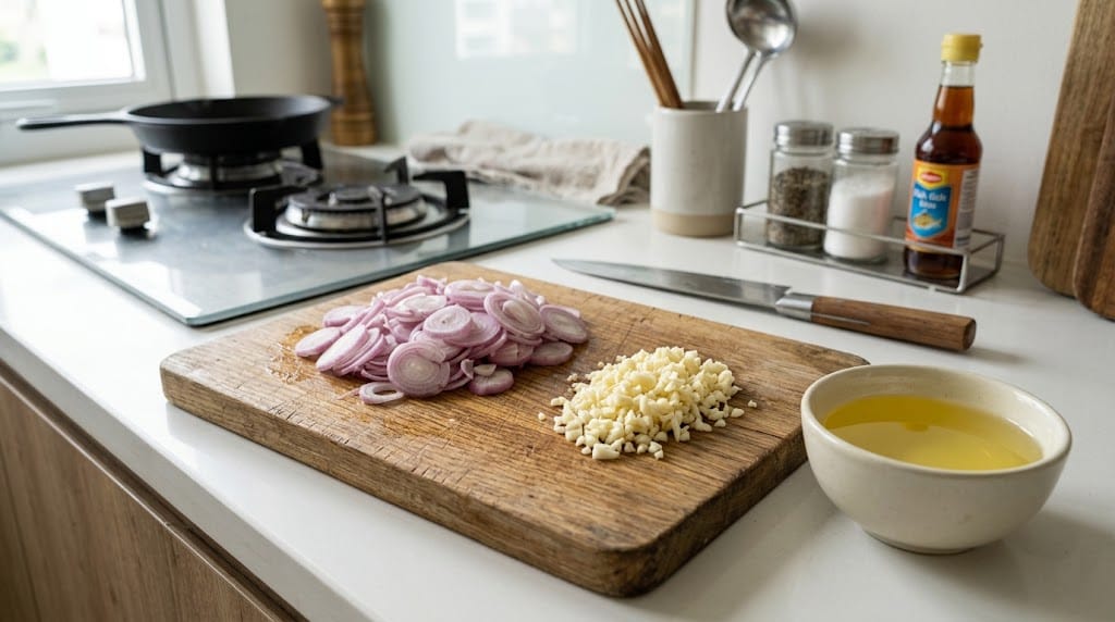 Mẹo nhỏ của mình: Sau khi cắt, hãy rải hành tỏi ra một cái khay rộng hoặc thấm qua giấy bếp để chúng thật ráo nước. Hành tỏi càng khô, lúc vào chảo sẽ càng ít bị văng dầu và nhanh chuyển sang trạng thái giòn. Nếu bạn đang chuẩn bị nguyên liệu cho một bữa cơm hoàn hảo, có thể tham khảo thêm Mẹo nấu cơm trắng dẻo thơm như nhà hàng để kết hợp cùng món xào nhé!