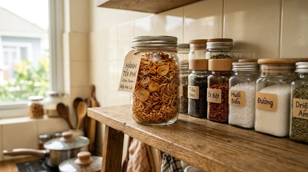 Làm sao để hành phi không bị mềm (ỉu) sau khi nguội? => Bí quyết nằm ở bước thấm dầu. Bạn phải đảm bảo hành tỏi khô ráo hoàn toàn và nguội hẳn mới cho vào hũ thủy tinh đậy kín. Nếu còn hơi ấm, chúng sẽ sinh ra hơi nước trong hũ làm mẻ hành của bạn bị mềm ngay lập tức.
