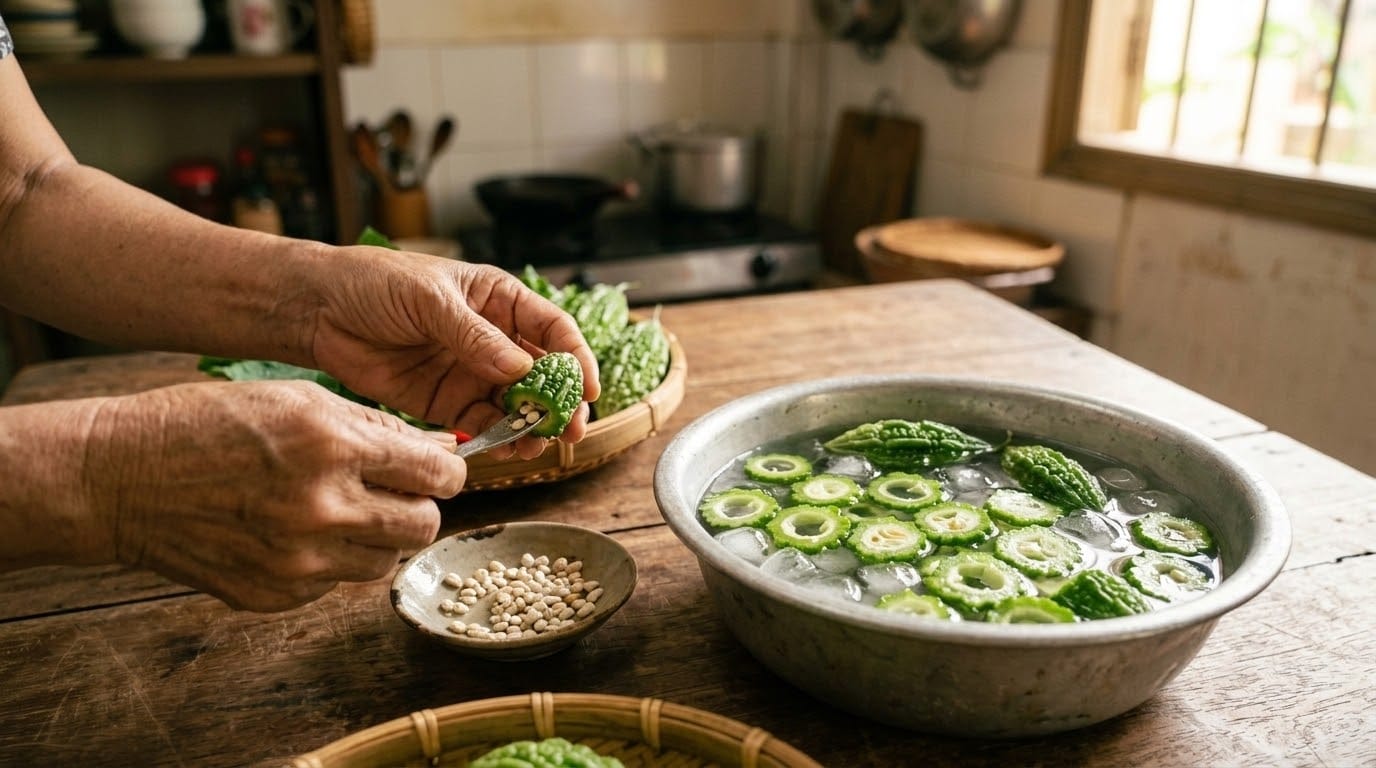 ### Bước 1: Sơ chế khổ qua rừng "sạch đắng, giữ giòn"