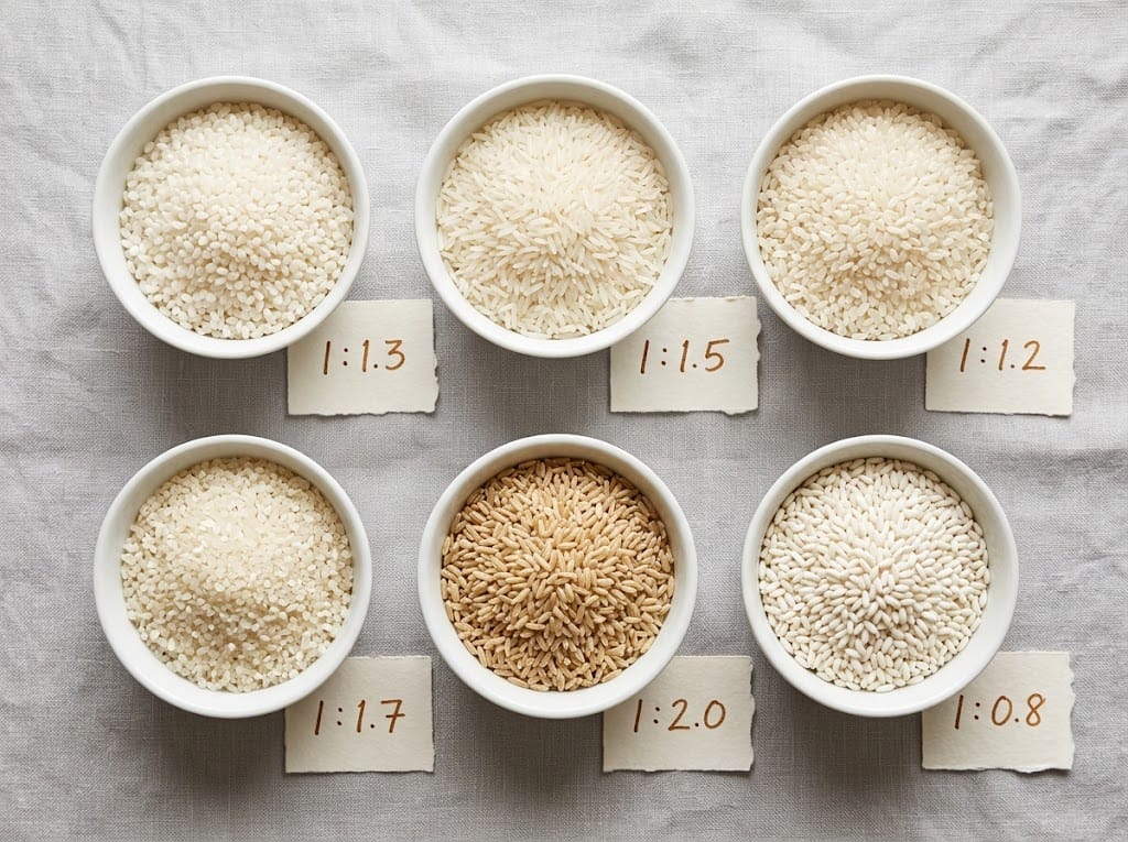 💡 Mẹo nhỏ: Nếu không chắc đang dùng gạo gì, bắt đầu với tỉ lệ 1:1,3 — đây là tỉ lệ an toàn nhất cho đa số gạo tẻ Việt Nam bán ở siêu thị.